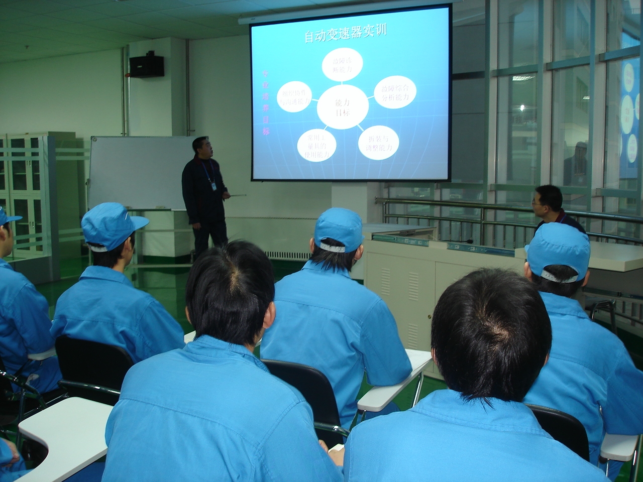 比武大赛采用工学结合的方法,其中包括有说课、操作演示、员工操作等方式。张维军老师首先系统地讲解了自动变速器故障码读取和清除的操作步骤及注意事项,同时演示了丰田A341E型自动变速器手工读取和清除故障码的操作。胡天明老师利用X-431型汽车故障检测仪演示了大众01N型自动变速器故障码的读取和清除操作。参加实训的员工对所学课程进行了操作练习,根据实训项目卡考核内容对实训员工进行了考核。最后由实训教师针对实训操作过程中员工存在的一些问题进行了点评和总结。经过一小时30分整个比武大赛圆满结束。