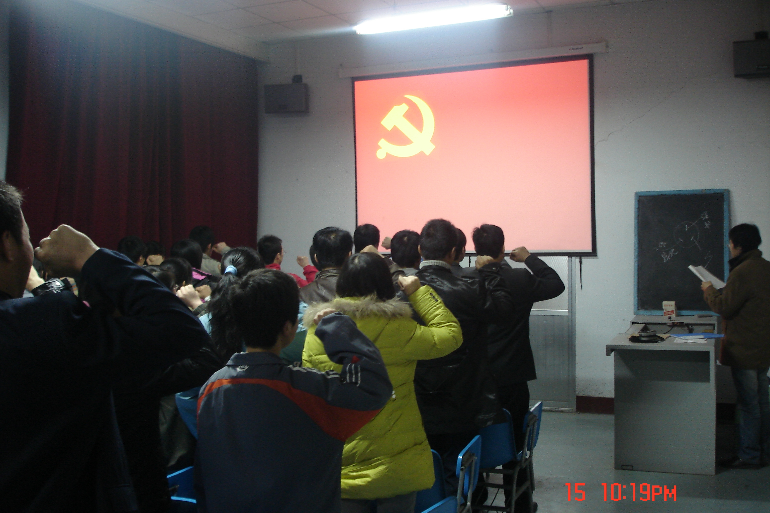 接着是42名入党积极分子作了入党发言,陈述了自己对党的认识,表达了自己积极向党组织靠拢的迫切愿望。随后,入党介绍人对入党积极分子的表现,进行了介绍和评价,最后经过大会4位正式党员举手表决,一致同意吸收42位重点培养对象为预备党员,系党总支负责人和全体党员向党旗宣誓。