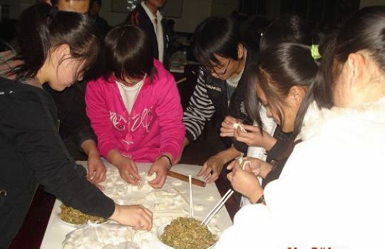 冬日的寒意丝毫没有影响同学们对晚会的热情,台上演绎着精彩的节目,台下热热闹闹地包着饺子。系领导在新年致辞中向全系教职员工一年来的辛勤工作表示诚挚的慰问和感谢,祝愿大家在新的一年里工作愉快、生活幸福,并向同学们送去了美好的祝福。晚会在激情四射、魅力十足的现代舞《飞得更高》中拉开了帷幕。师生包饺子比赛为晚会增添了一道亮丽的风景;猜灯谜活动在一曲优雅动听的《青花瓷》美妙旋律中展开,同学们斗智斗勇,将灯谜谜底一一揭晓……吃着自己亲手包的饺子,看着文艺节目,同学们的笑容在寒冬腊月里温暖着彼此的心灵。通过本次活动,使同学们深深感到,虽然远在他乡,也依然能够感受到亲人的关怀、朋友的呵护和同学们的关心。