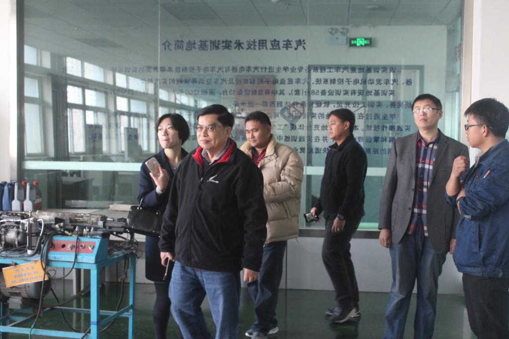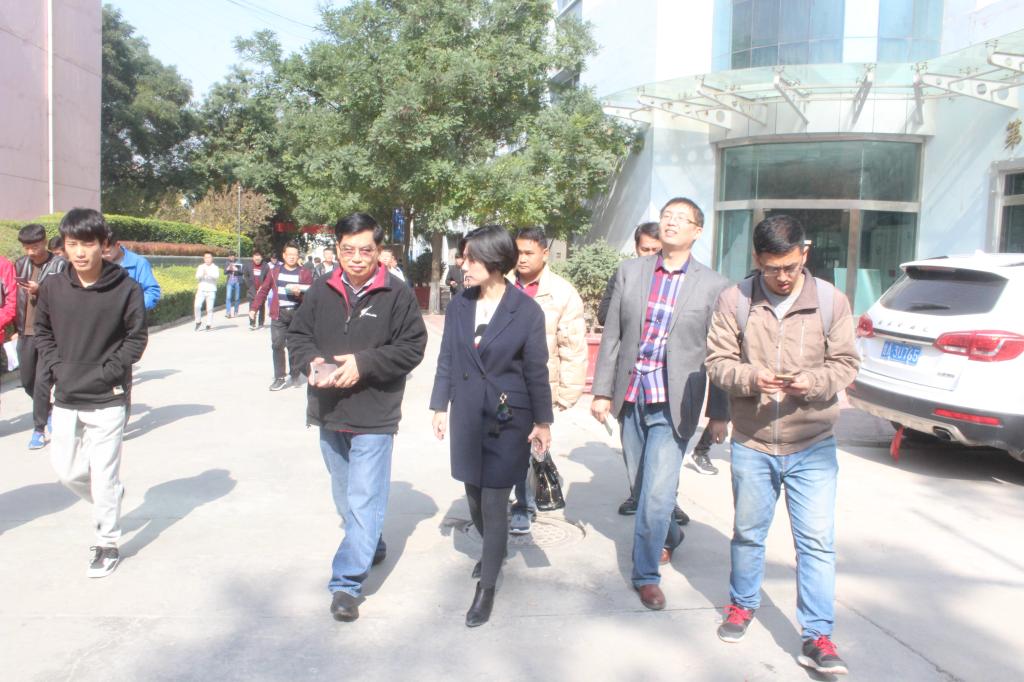 在公司张维军主任、冯乐雯老师和马银余老师的带领下,三位老师一行参观了汽车实训室和教研室,马银余老师详细介绍了实训室的教学和实训的一些设备,冯乐雯老师给他们做了翻译。三位泰国老师重点了解了公司的工程实践班的教学科研成果巴哈车、卡丁车、微耕机、新能源车的制造及获奖情况,对公司的这项教研成果给了很高的评价。公司老师还向来三位泰国老师毫无保留地介绍了公司正在重点开展的一些工作。在介绍中,来宾们认真地记录着,并不时点头称赞。