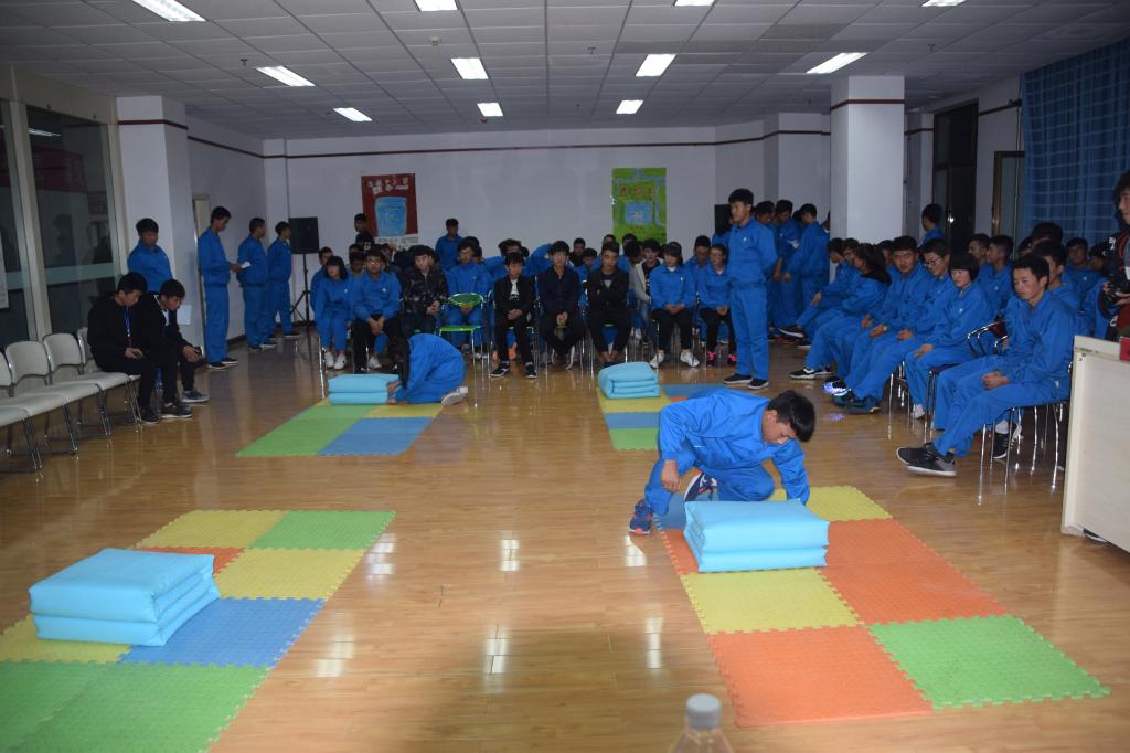 比赛开始,随着主持人一声“开始”的号令,同学们纷纷开始叠军被,一捏一折,每一步都十分利落而娴熟,选手们都争分夺秒,耐心细致得做好叠军被的每一步,使自己的军被能够达到标准,虽然选手们采用的方法不同,但经过了选手们的整理,整洁美观的军被出现在了评委们的眼前,选手们熟练地动作也给在场观众留下了深刻的印象,在有限的时间内完成了比赛所规定的内容。当他们的作品像一个个豆腐块整齐的摆放在各位评委面前时,在场观众爆发出了雷鸣般的掌声,将此次活动推向一次又一次的高潮。