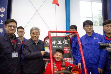 徐念峰秘书长在发言介绍了中国汽车工程学会巴哈大赛的成长历程,其1976年起源于美国,2015年由中国汽车工程学会引进并创立,四年来已经成功举办了5场比赛,参赛车队数量逐年递增,2019年报名参赛车队总数也突破了100支。目前,在开设汽车专业的本科院校、职业院校,组车队、造巴哈和跑比赛已经蔚然成风。巴哈热潮也引发了大家对“工程实践教学”的关注和思考,更引起了社会各界的广泛关注。3月21日,教育部党组书记、部长陈宝生视察常州时,教育部党组书记、部长陈宝生视察常州科教城时,当得知常州工程职业技术公司车队是全国第一批次(5月份)前往美国加州参加国际性巴哈大赛的高职院校时,他拍着赛车手的肩膀,揪了揪他的耳朵,殷殷寄语,为参赛队员鼓劲壮行。