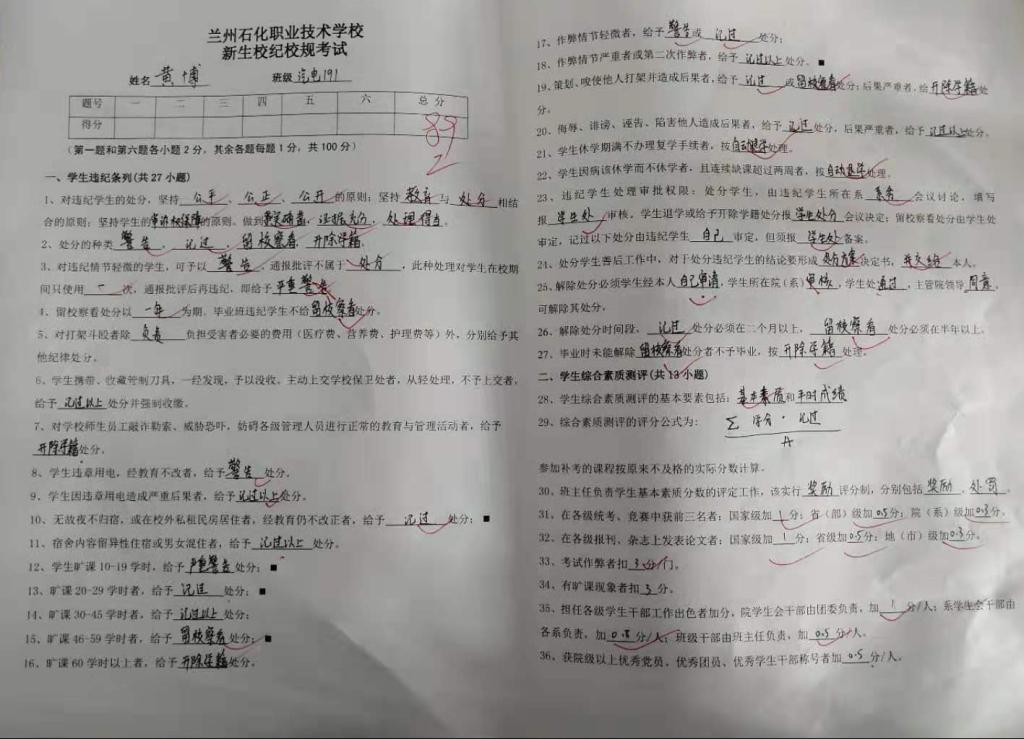 为使2019级新生更加深入的了解校纪校规和更好地遵守校纪校规,同时也利用理论知识强化员工对自我良好生活习惯的养成。TapTap点点于2019年10月15日晚8点在东主教和五中心教室以班为单位举行校纪校规考试,此次考试主要面向TapTap点点2019级新生。