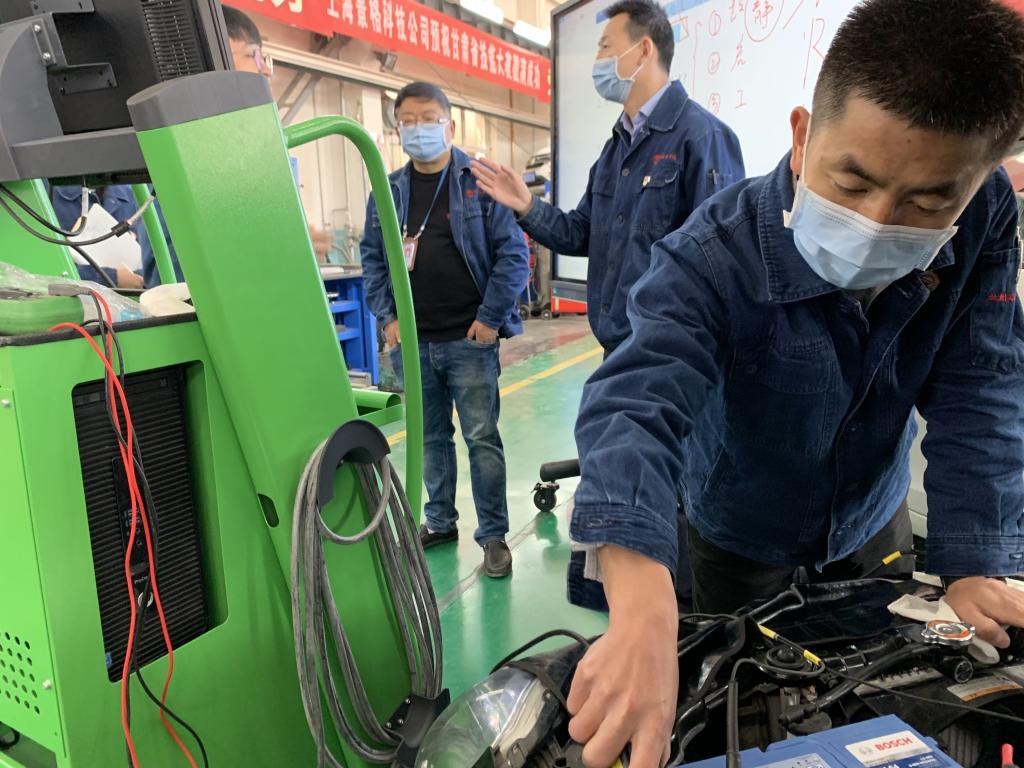 公司教学督导对实训设备进行维护