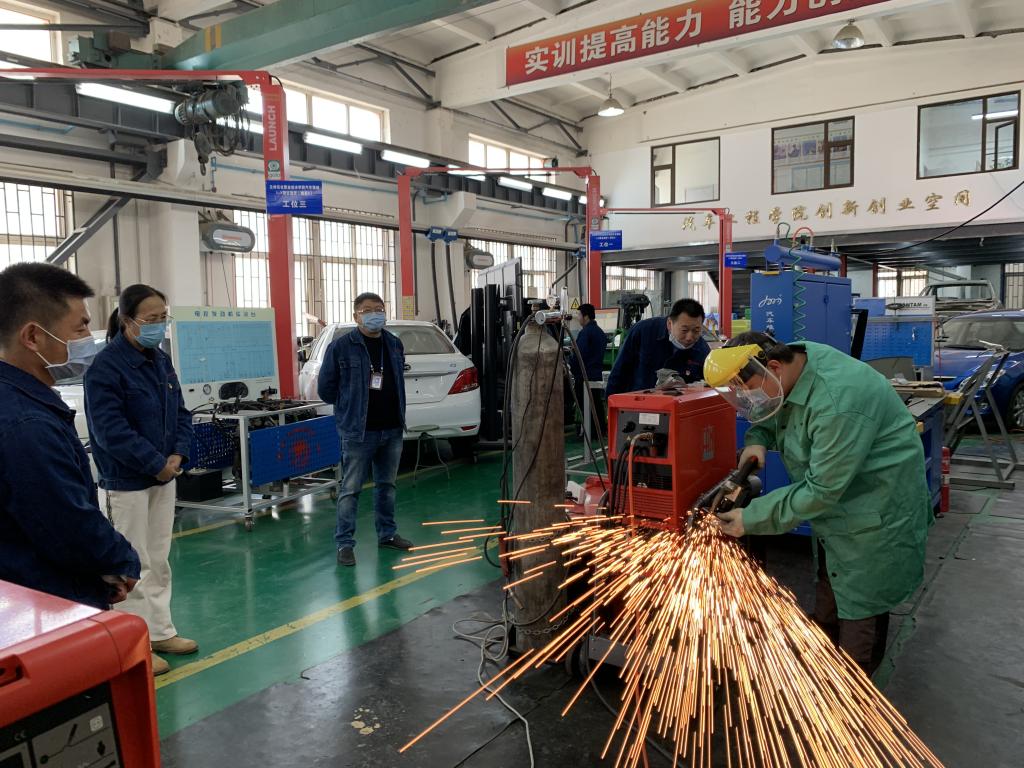 《汽车钣金实训》、《汽车底盘电控技术与维修实训》授课老师正在直播上课,公司教学督导小组进行听课指导