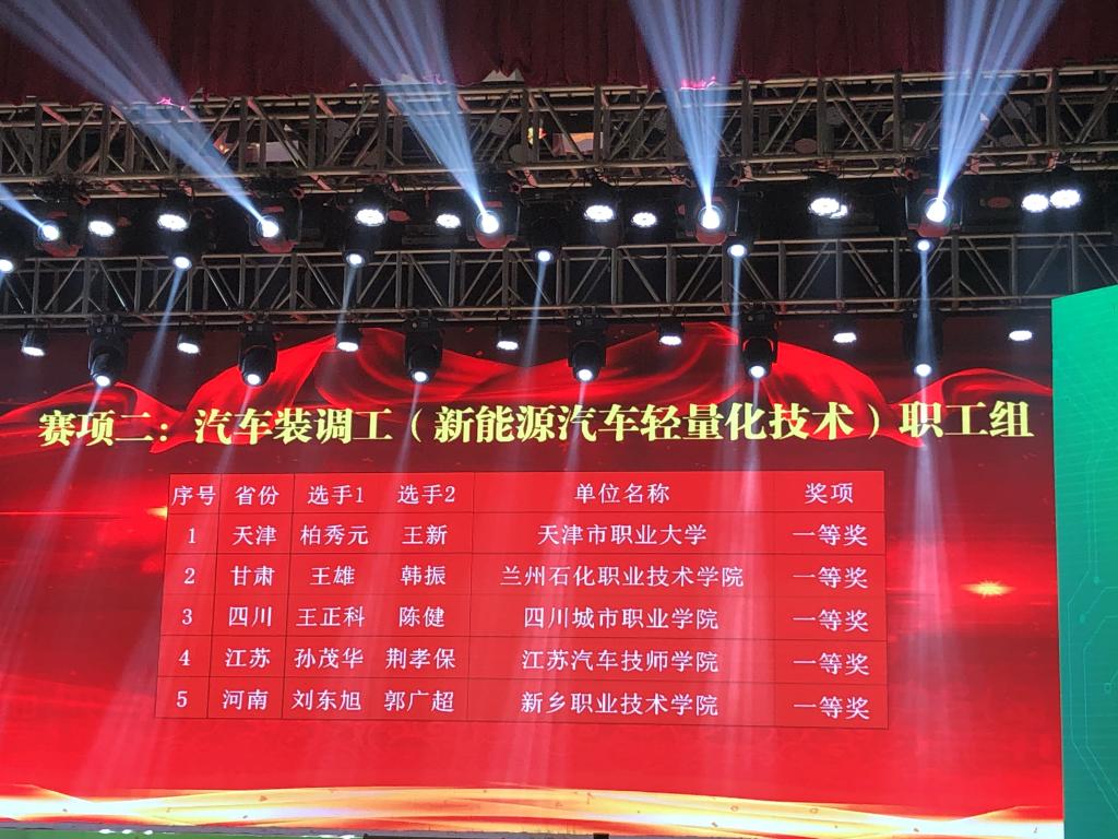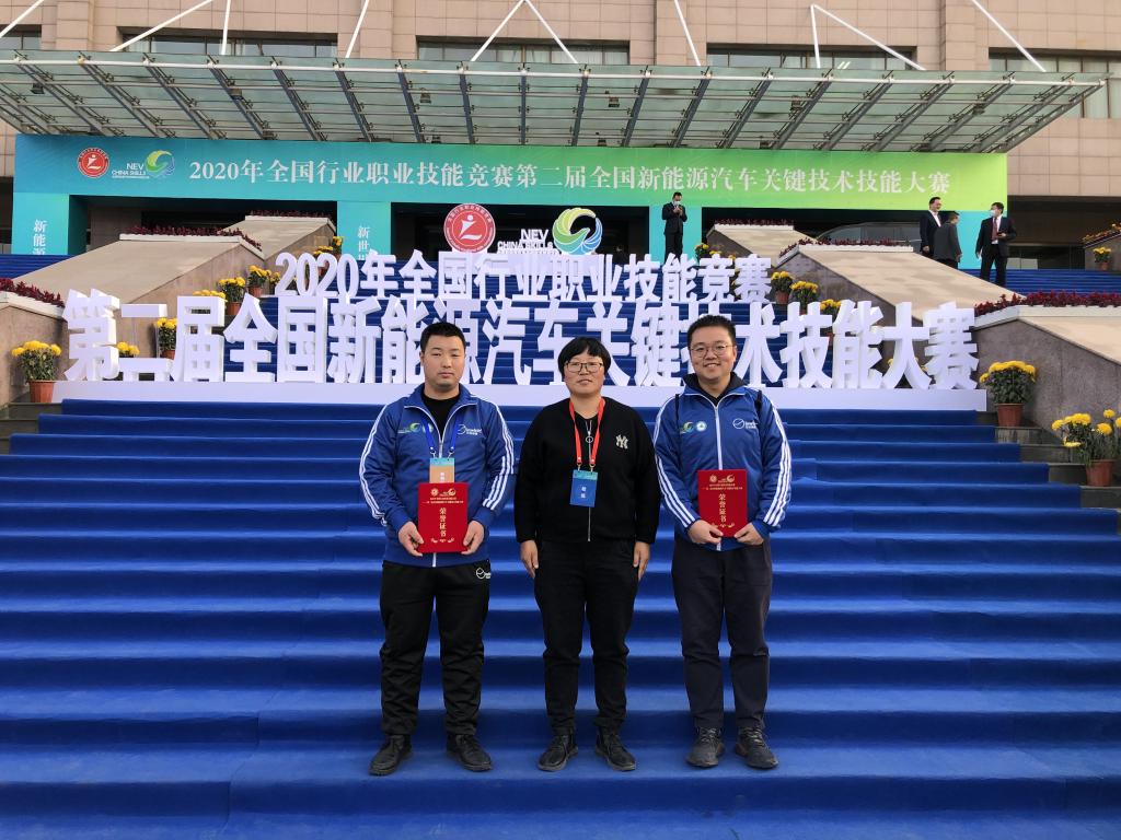 本届比赛共有来自全国29个省(区、市)及机械行业的598名选手报名参加决赛,其中,职工组324人,员工组274人。公司代表队成功参赛,经过3天的激烈比拼,最终取得一等、二等、三等各一项的好成绩。其中公司王雄、韩振两位老师以总成绩第二名荣获新能源汽车轻量化技术教工组一等奖,并被授予“全国技术能手”荣誉称号,直接晋升技师职业资格。刘庆丰、何岩岩两位老师,荣获新能源汽车电控技术教工组三等奖。2019级新能源专业员工康开彪,王世杰荣获新能源汽车电控技术员工组二等奖。