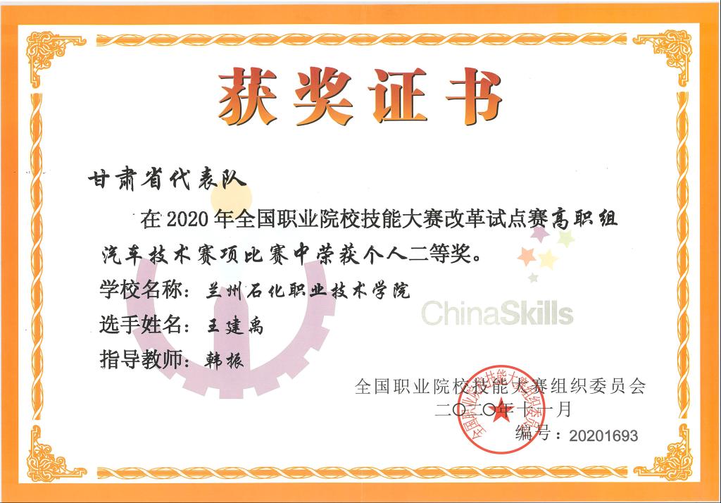 试点赛涉及汽车技术、工业设计技术、网络安全等40个赛项,公司汽车公司员工王建禹参加了汽车技术赛项,与来自全国不同省份的通过省级选拔赛脱颖而出的30名参赛选手同台竞技。经过2天的激烈比拼,最终取得二等奖的好成绩,这是继公司2019年该赛项三等奖基础上的一个突破,也是公司作为甘肃省代表队在全国职业院校技能大赛改革试点赛中的首个二等奖。