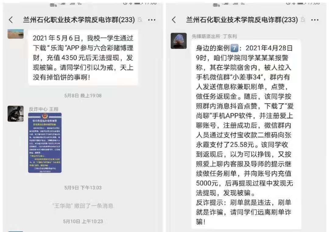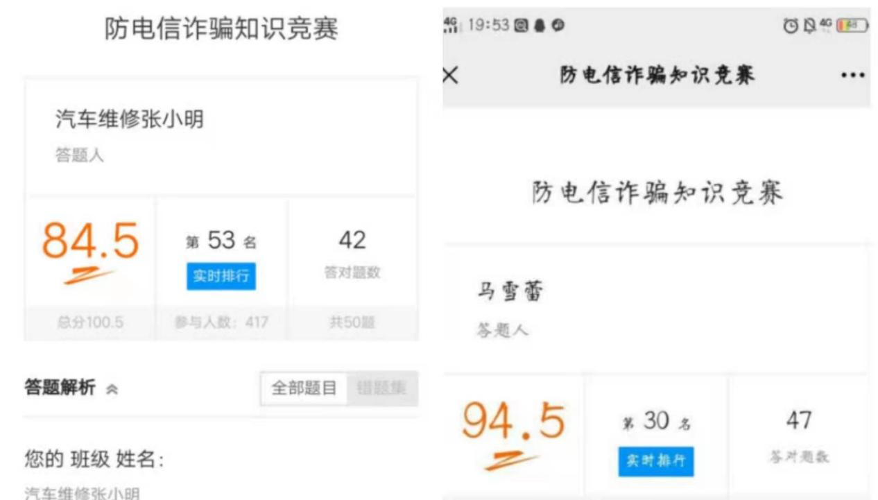 主题班会活动中,班主任引导员工在骑共享单车过程中,自觉遵守交通法律法规,提醒员工安全文明出行;并提醒员工高度重视个人身份信息保密,谨防身份信息被不法分子利用,在不知情的情况下发生电信诈骗行为,并要求员工尽快注册“金钟罩”,起到预警作用。在案例讲解活动中,辅导员将一些典型案例发放到各个班级群中,让同学们充分认识到新型电信诈骗犯罪的严重危害性。通过线上安全知识竞赛,教育员工树立理性消费观念,自觉远离网络借贷行为,规避盲目消费风险。