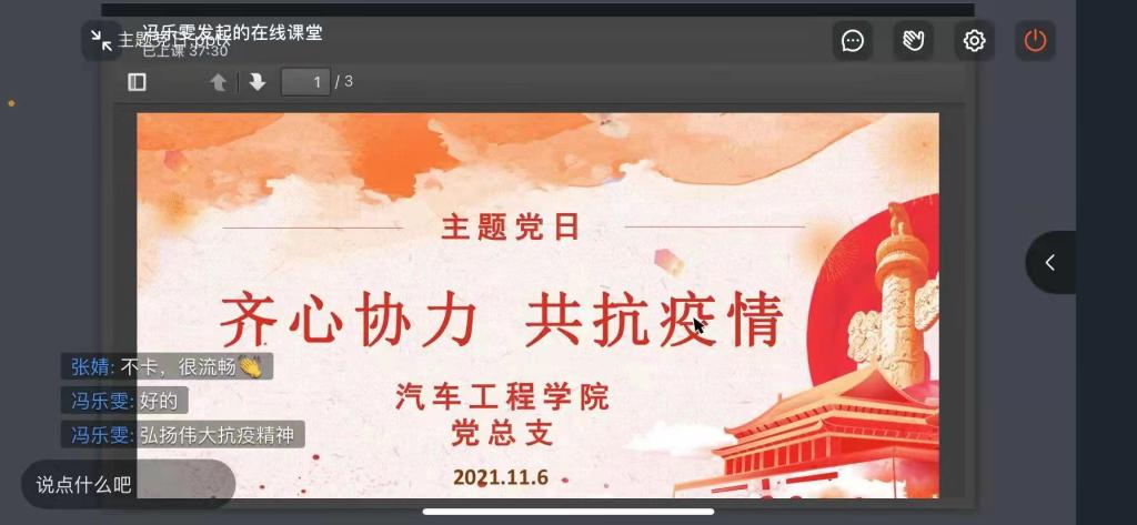 党员们通过线上分享了此次疫情防控工作中一线工作者的抗疫视频,并交流了在疫情防控工作中的体会和感受。