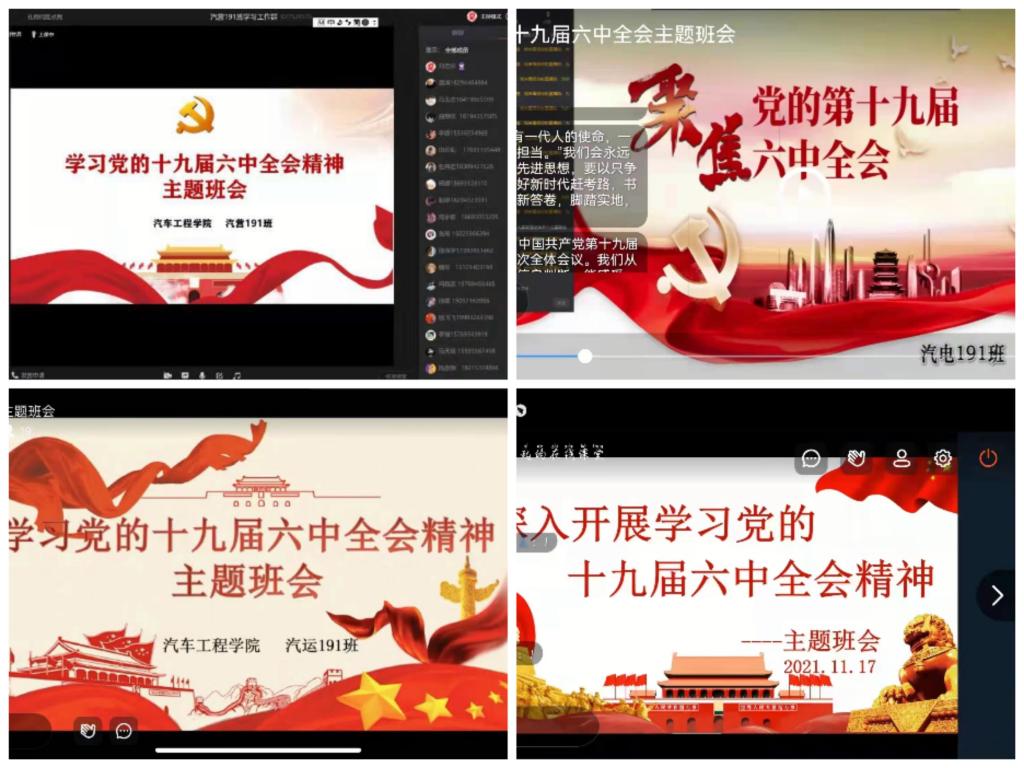 各班级开展了学习党的十九届六中全会精神的主题班会,班主任线上领学,引导员工在思想和行动上紧跟党中央重大决策部署,一定要把总书记重要讲话精神和十九届六中全会精神,学习好,领会好,贯彻好,要做到学思践悟,学以致用,真正用先进思想武装头脑。通过学习党的百年奋斗历程和重大成就,也让同学们更加体会到今天的幸福生活来之不易,须倍加珍惜。