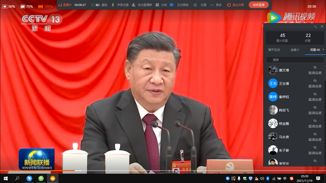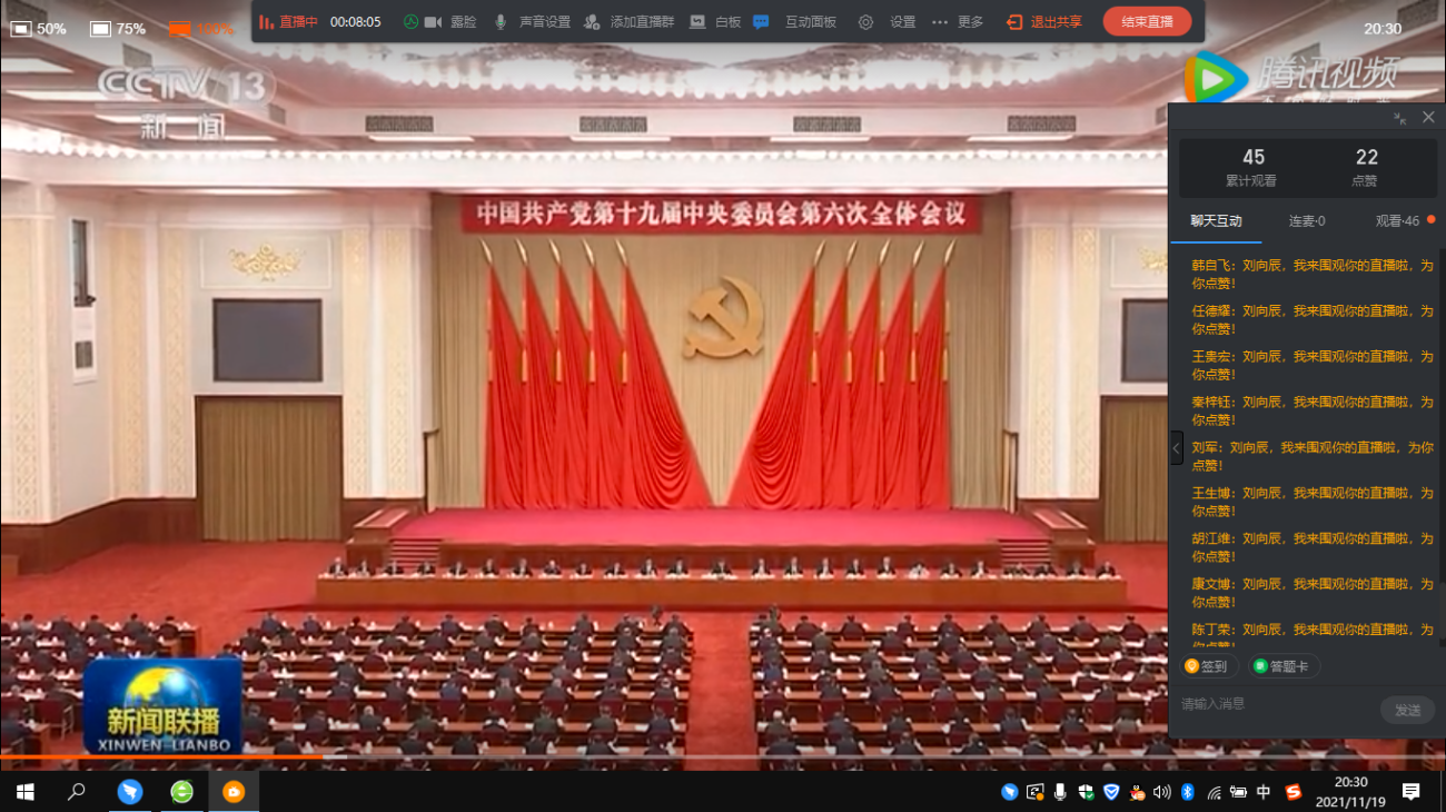 各班级开展了学习党的十九届六中全会精神的主题班会,班主任线上领学,引导员工在思想和行动上紧跟党中央重大决策部署,一定要把总书记重要讲话精神和十九届六中全会精神,学习好,领会好,贯彻好,要做到学思践悟,学以致用,真正用先进思想武装头脑。通过学习党的百年奋斗历程和重大成就,也让同学们更加体会到今天的幸福生活来之不易,须倍加珍惜。