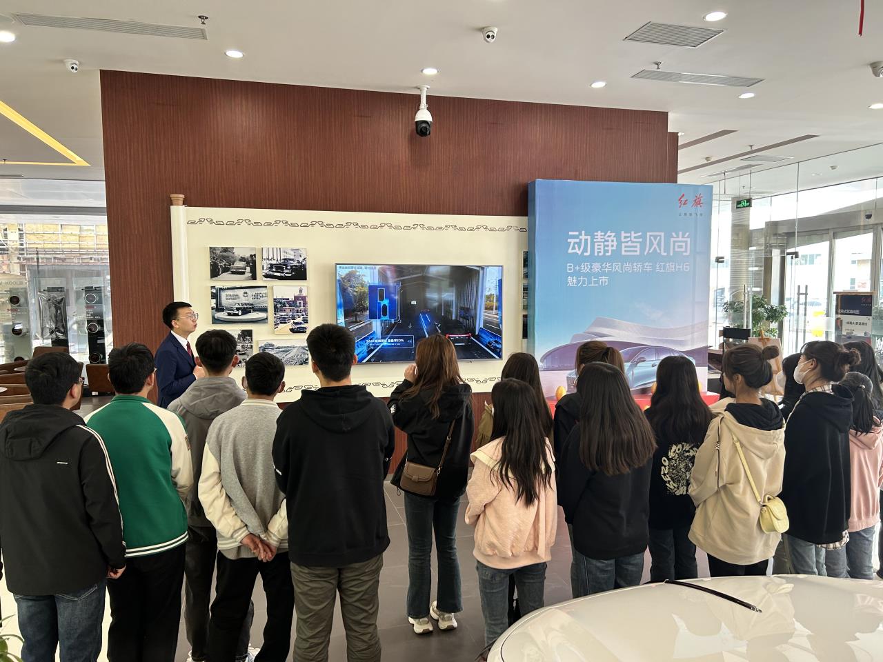 兰州金岛红旗汽车销售有限公司总经理齐光宝、人力资源部经理程斐热情接待了公司师生,并组织同学们进行了参观学习,对展厅的车型一一向师生做了详细的介绍,相关负责人向大家介绍了工作环境、工作岗位及工作流程,耐心细致地解答了同学们关心的问题。