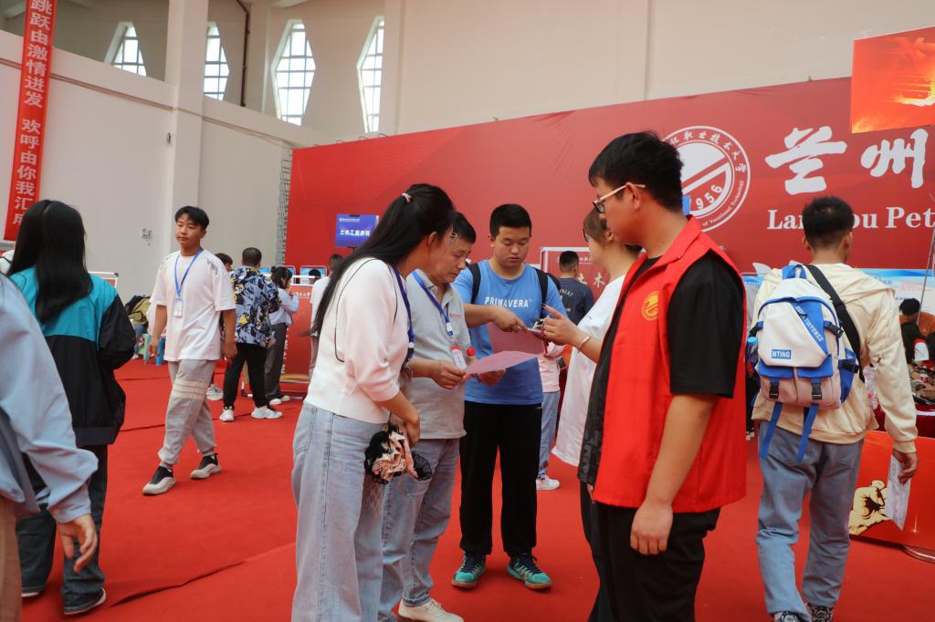 体育馆门前,志愿者们在门口迎接新生的到来。曾经,他们也带着懵懂青涩踏入校园。如今,他们已是迎接新生的师哥师姐。