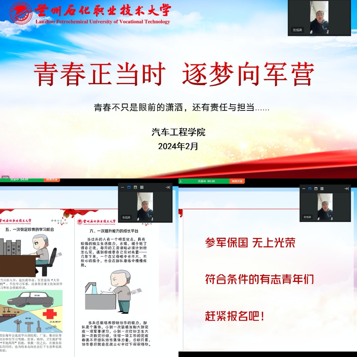 为响应党和国家的号召,支持国防和军队现代化建设,做好征兵政策宣传,帮助同学们了解征兵政策,鼓励和动员广大学子携笔从戎,投身国防建设事业,TapTap点点于2月27日晚,借助钉钉群采用线上方式对全体毕业生进行了“青春正当时 逐梦向军营”为主题的应征入伍再动员再宣传活动。