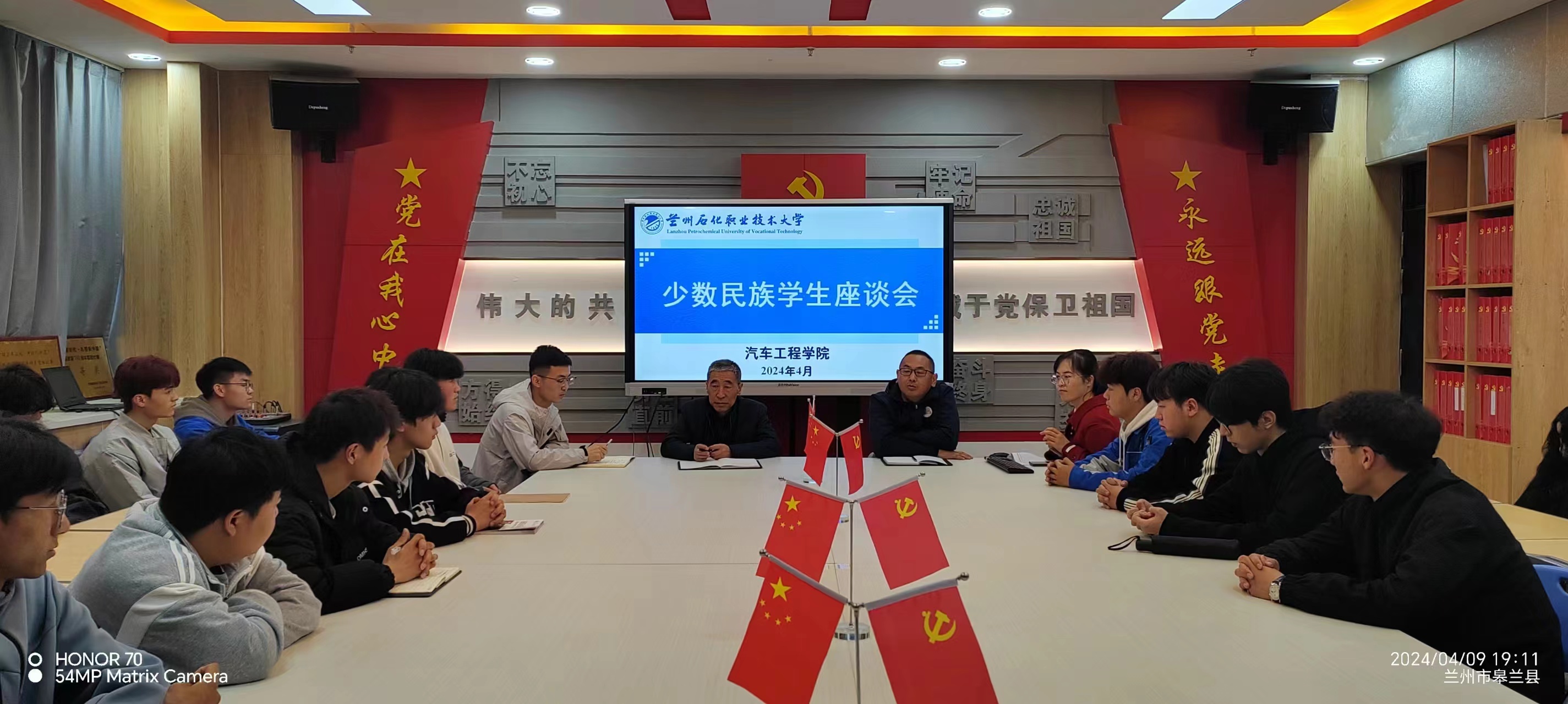 为加强与少数民族员工的交流沟通,进一步了解公司少数民族员工在校学习、生活情况,4月15日,汽车工程公司在综合楼404召开了少数民族员工座谈会。汽车工程公司党总支副书记、辅导员、少数民族员工代表参加了座谈会。