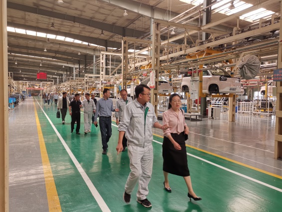 公司领导、专业带头人、骨干教师、教研室主任以及部分教师观摩了兰州知豆电动汽车有限公司生产车间。