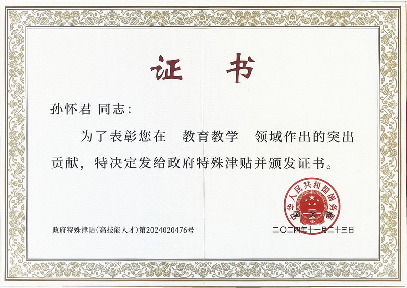 近日,经党中央、国务院批准,2024年享受国务院政府特殊津贴人员名单正式公布,公司教师孙怀君成功入选。这一殊荣不仅是对孙怀君老师躬耕职教一线、深耕技能育人的高度认可,更是公司深入贯彻落实习近平总书记关于人才工作重要论述的生动实践,彰显了公司在新时代人才强国战略指引下服务技能型社会建设的显著成效。